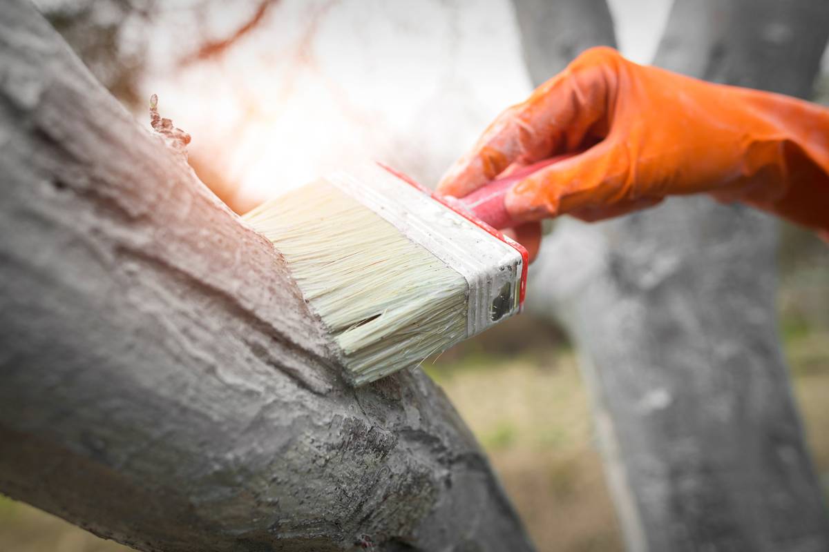 Bielenie pni drzew owocowych (np. jabłoni, grusz, śliw) to zabieg, który chroni korę przed pękaniem w wyniku dużych wahań temperatur. W ciągu dnia słońce nagrzewa korę, a nocą, gdy temperatura spada, może dojść do uszkodzeń. Mleko wapienne (roztwór wapna palonego z wodą) tworzy białą powłokę, która odbija promienie słoneczne i zmniejsza ryzyko pęknięć. Zabieg należy powtarzać co kilka tygodni, aż do końca kwietnia.